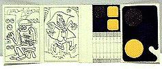 - Description: In pack cardboard set of 2 b/w line art pictures, paints and brushes.